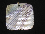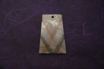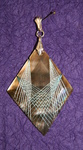 2008De schelp waarvan deze ruitvormige hanger is gemaakt heeft een mooie donkere kleur. De kleuren zijde steken af en kleuren mee tegelijk.