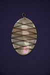 2007Schelp bespannen met zijde. op verzoek kan de hanger in een andere kleurcombinatie worden uitgevoerd.