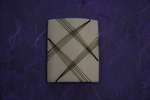 2007Hier is de schelp bespannen met paarse en grijze zijde. Deze zijde kan vervangen worden door een andere kleur.
