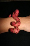 2007Deze armband is gemaakt van wol. Tijdens het vilten zijn er zijdegarens in verwerkt. Deze armband kan ook in andere kleuren worden gemaakt.