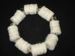 2007De armband is gemaakt van stukjes vilt. Nadat de stukjes vilt tot armband zijn gemaakt zijn ze nog bewerkt met zijde. Ook deze armband kan in andere kleurcombinaties worden uitgevoerd.